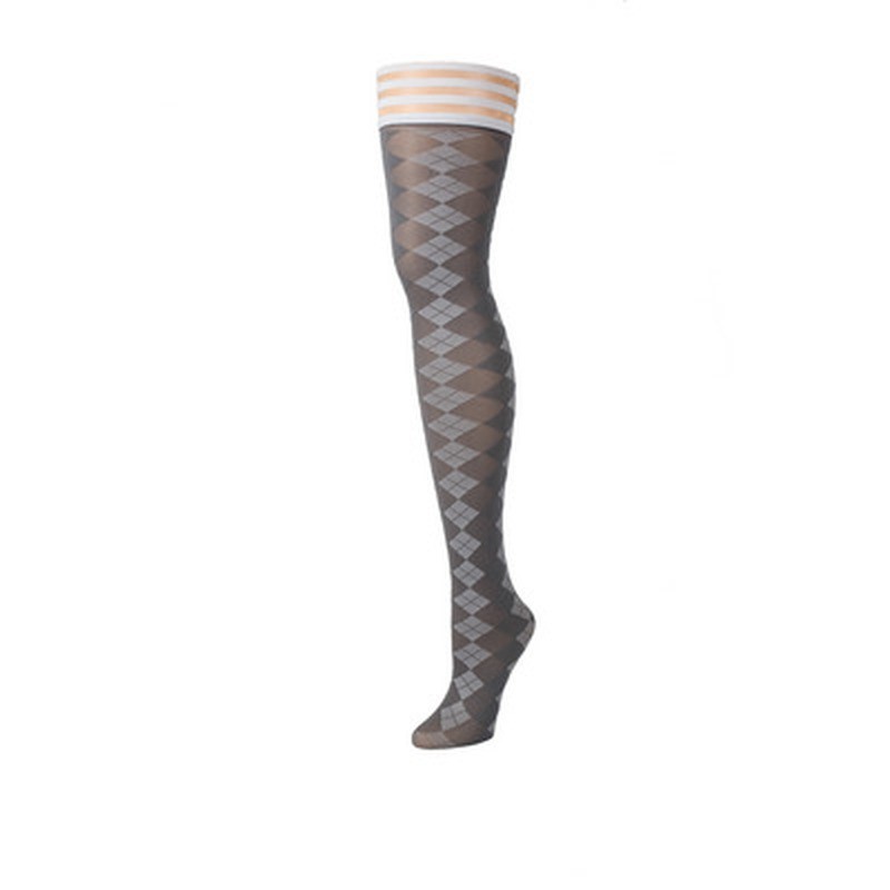 Calze autoreggenti fino alla coscia Kix'ies Golf con motivo argyle e bordo antiscivolo, per uno stile e un comfort che durano tutto il giorno.