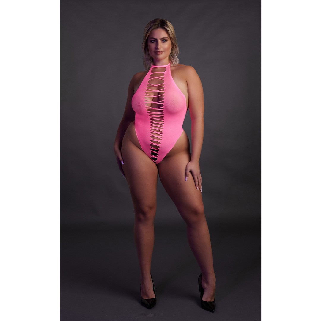 Body Neon UV con scollo alto e collo all'americana: esalta le curve e brilla al buio.