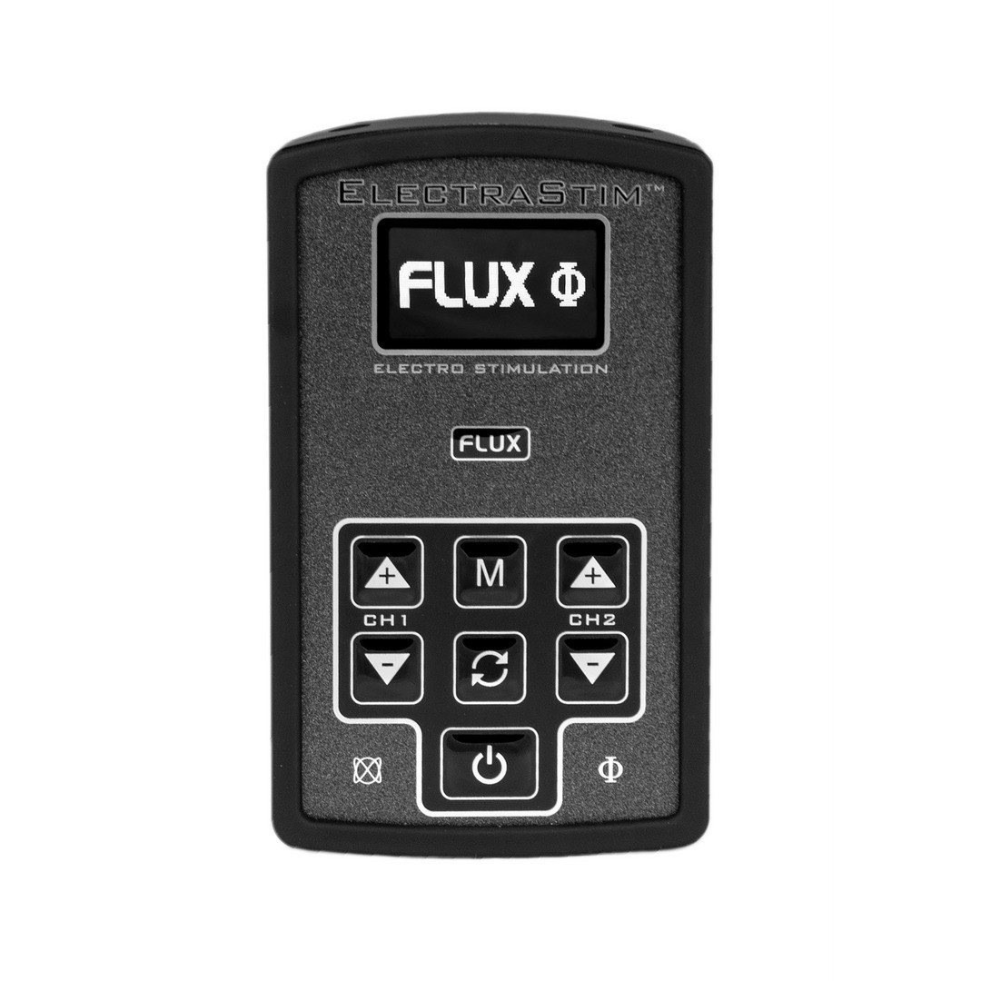 Stimolatore e-stim Flux a due canali, potente e personalizzabile, ideale per giochi intensi e utenti esperti.