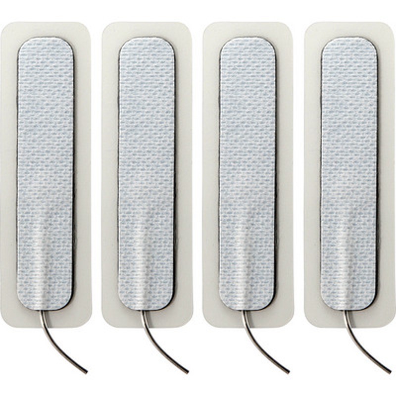 Set di 4 elettrodi adesivi lunghi ElectraPads, ideali per una stimolazione genitale precisa e riutilizzabile.