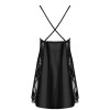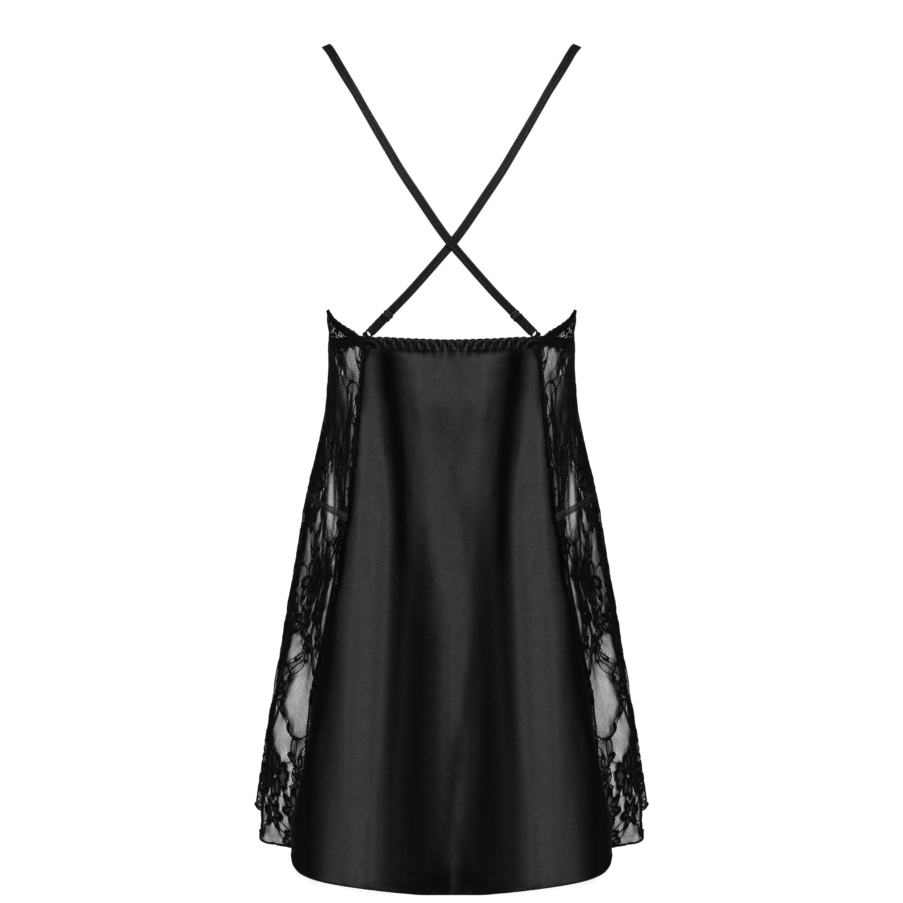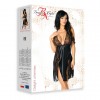 Camicia nera molto esclusiva, ma allo stesso tempo sensuale e provocante, realizzata in raso e due tipi di pizzo. La profonda scollatura espone magnificamente il seno, mentre gli spacchi sul davanti mettono in risalto le gambe.