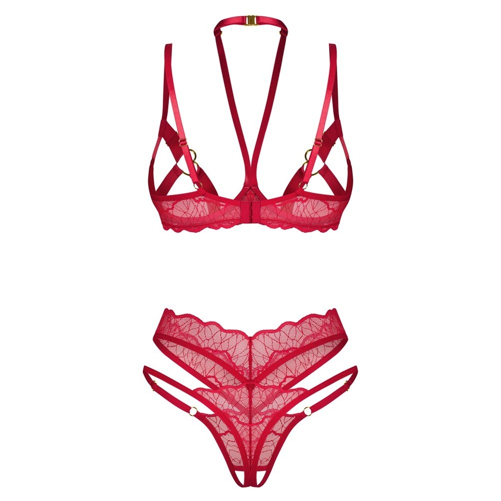 Attrazione sorprendente in un sensualissimo colore rosso! Il set Cupide Desir crotchless di Obsessive contiene un reggiseno e una stringa.