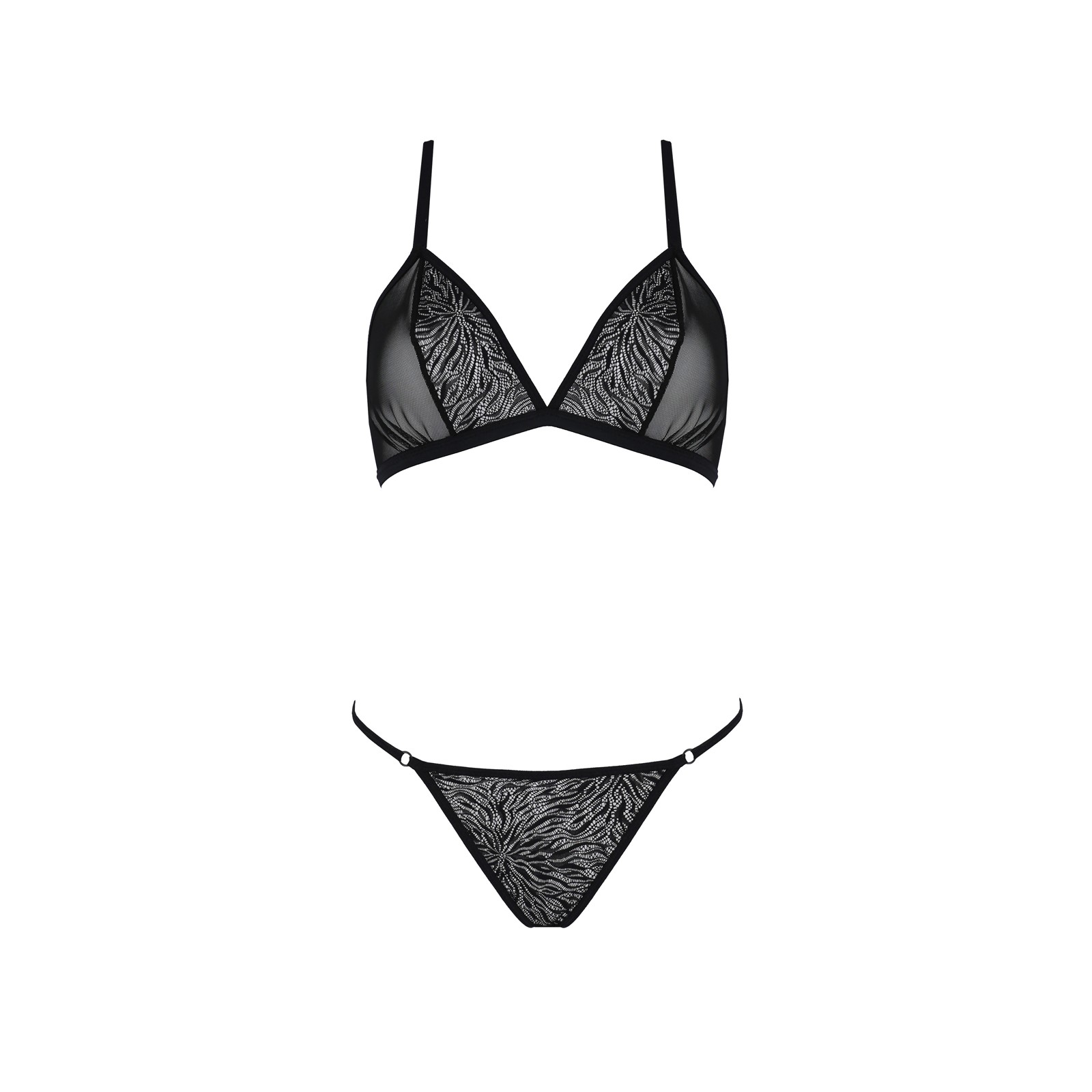 Il set bikini Selaginella della collezione eco da Passion è composto da un reggiseno in morbido tulle con delicati inserti in pizzo e da un sexy perizoma.