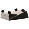 Il set Bondage Wedge/Ramp Combo di Liberator comprende 2 cuscini sessuali ergonomici a forma di cuneo di dimensioni diverse. Il set comprende anche 4 legacci rimovibili per mani e piedi. Il set è dotato di morbide fodere in microfibra che possono aderire l'una all'altra senza scivolare. Ciò significa che il cuscino piccolo a forma di cuneo può essere posizionato ovunque sul cuscino grande a forma di cuneo. Entrambi i cuscini possono essere utilizzati anche singolarmente. I due cuscini rigidi sono il supporto perfetto e confortevole per le posizioni sessuali e i giochi orali.