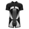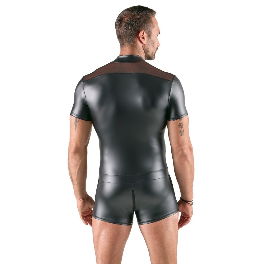 La tuta nera corta e aderente alla pelle di Svenjoyment è realizzata in un elegante mix di materiale opaco e powernet trasparente. Il materiale elasticizzato aderisce delicatamente alla pelle ed è molto comodo da indossare. La zip a 3 vie parte dal colletto, passa sul cavallo imbottito e si ferma sulla parte superiore dei glutei. La zip può essere aperta quando e come si vuole.