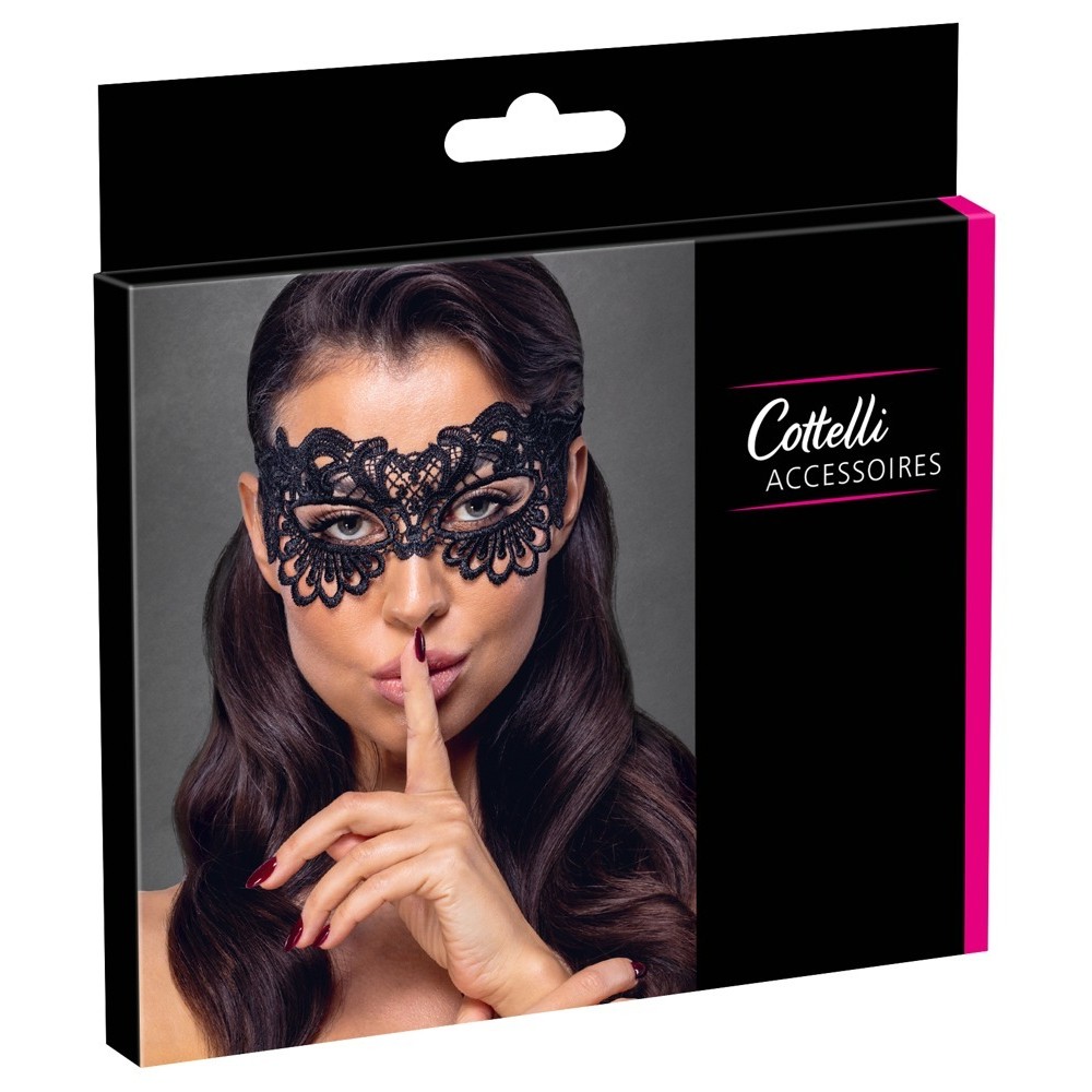 Questa bellissima benda nera è realizzata in materiale ricamato di alta qualità e delicato. La benda è dotata di fori per gli occhi. Ci sono nastri di pizzo che possono essere usati per legarla insieme. È morbida e liscia per una vestibilità perfetta e confortevole.