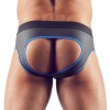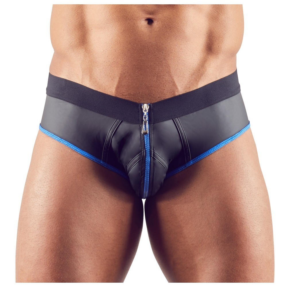Jockstrap em material mate-brilhante com um excitante aspeto de neoprene/borracha. Aberto na parte traseira para um toque ousado, com fecho frontal que acrescenta um detalhe provocante e funcional.