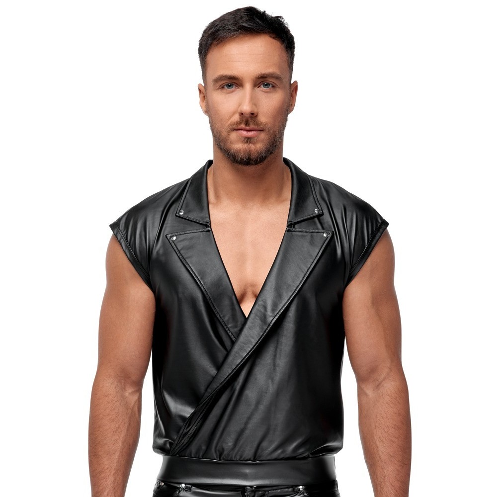 Camisa solta da NEK em elegante preto mate, com mangas sobrepostas e cintura elástica na bainha. Frente aberta com sobreposição e gola de lapela comprida com tachas, para um visual arrojado. Suave e elástica, garante máximo conforto ao longo do dia.