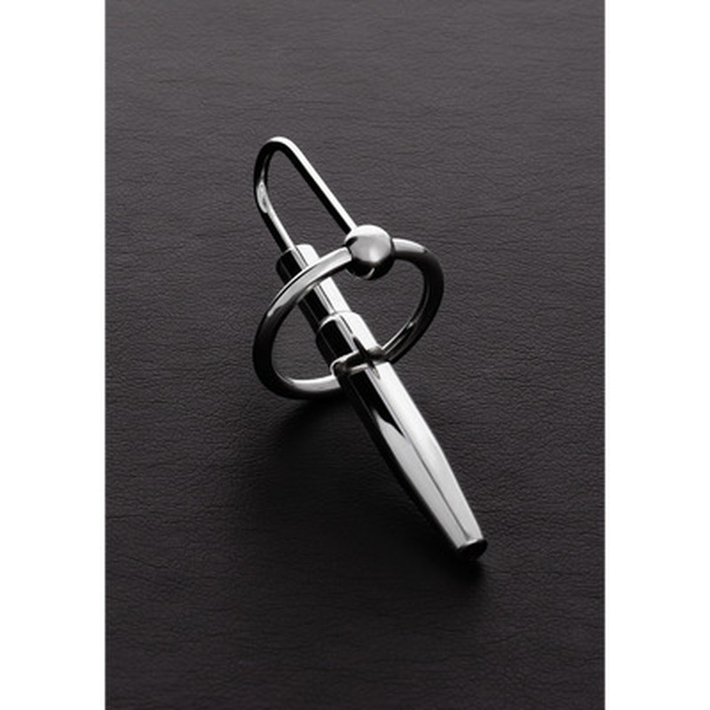Plug de uretra em aço inoxidável com anel móvel, 6 cm, para estimulação intensa e conforto ergonómico.