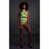 Conjunto neon com gola de tartaruga e tanga de cintura alta ativado por UV para um visual moderno e impactante.