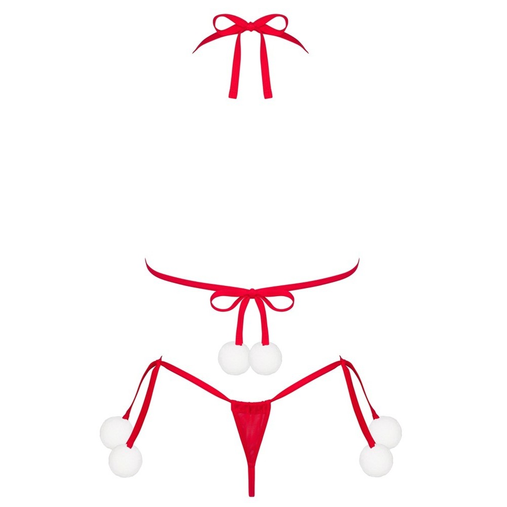 Não apenas para seduzir durante o período festivo! O conjunto de lingerie Bobble Girl vermelho da Obsessive contém um sutiã e um string.