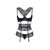 Design: Soutien com armação que proporciona apoio e acentua as suas curvas, garantindo que se sente confortável e sedutora. A renda luxuosa acrescenta um toque de sofisticação e sensualidade. Alças ajustáveis e ganchos nas costas. Cinto de ligas de cintura alta que realça a sua silhueta e acrescenta um charme vintage. Tanga a condizer que completa o conjunto com um visual sexy e arrojado.