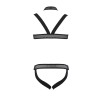 Este conjunto é feito de uma combinação de couro ecologico e malha elástica. A parte da frente das cuecas e do arnês é decorada com duas argolas de metal, conferindo um aspeto elegante e permitindo a combinação com vários outros acessórios.