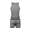 Se quiser apimentar um pouco a sua vida erótica, o conjunto Oscar vai certamente interessá-la. É composto por um colete fino e uns boxers sensuais, feitos de uma combinação de microfibra macia e tule preto.