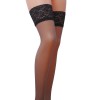 Meias autossustentáveis com renda a contrastar, que criam um efeito sofisticado e sensual. Fixação segura e confortável, sem necessidade de ligas.