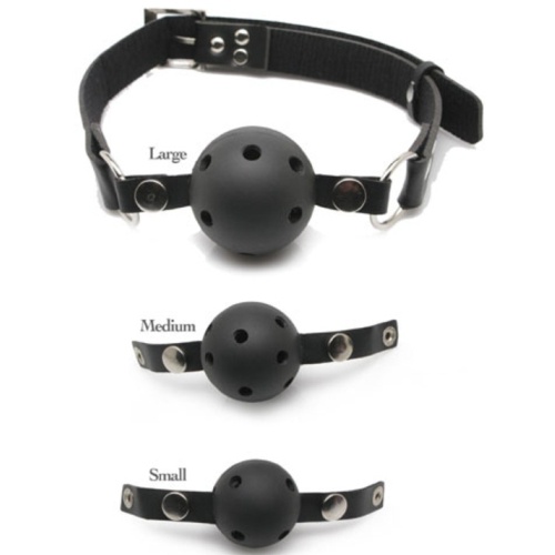 Nem mais uma palavra! Esta mordaça de treino é ideal para principiantes e satisfaz o utilizador mais experiente. Composta por uma correia de couro com 10 orifícios para um ajuste perfeito, 3 bolas respiráveis e venda. As bolas têm diferentes tamanhos, podendo o utilizador iniciar-se pela mais pequena e ir aumentado o grau de dificuldade. Ensine ao seu submisso quem manda! 100% livre de ftalatos.