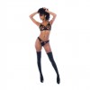 Комплект из двух частей, выполненный из сетки и ткани с мокрым эффектом. В комплект входит топ с полуоткрытыми чашечками и регулируемыми двойными бретелями, а также подходящие стринги.